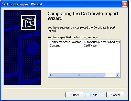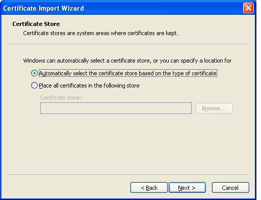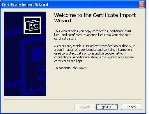 Esille tulee wizardi, joka ohjaa varmenteen asentamisessa. Valitse "Next", "Next", "Finish".
